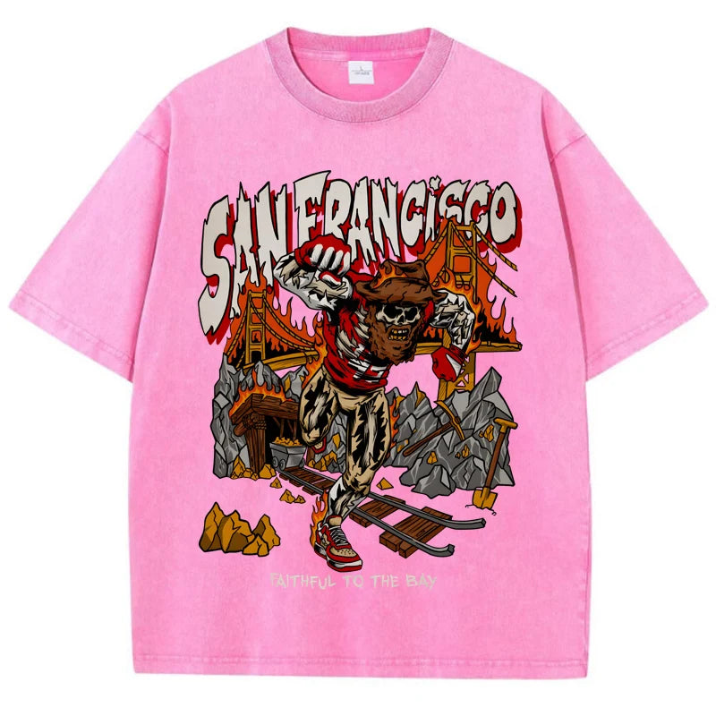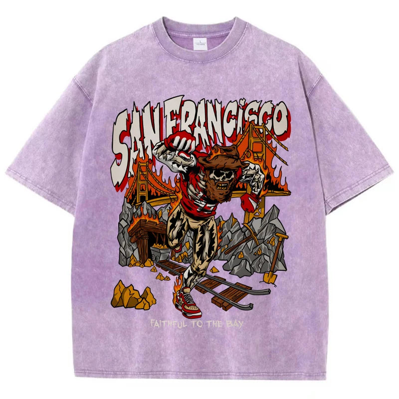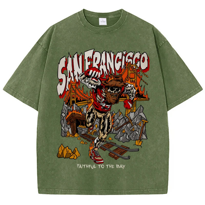 American Washed retro and worn out T-Shirt for men Women Loose Oversized Clothes San Francisco Skeleton Miner Graphic Streetwear